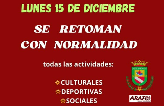 ARAFO ANUNCIA LA VUELTA A LA NORMALIDAD ESTE LUNES.