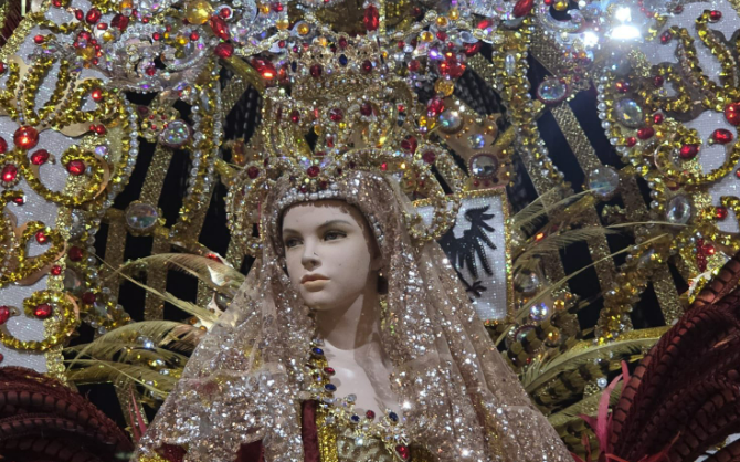 Arafo se convierte estos días en un punto de encuentro para los amantes del Carnaval. El Ayuntamiento de la localidad ha anunciado que la fantasía «Reina de Dos Mundos», diseñada por Juan Carlos Armas y lucida por María Cristina Fariña Rodríguez en la pasada Gala de Elección de la Reina de los Mayores del Carnaval de Santa Cruz de Tenerife, ya se encuentra expuesta en el Centro Cultural y Recreo de Arafo.