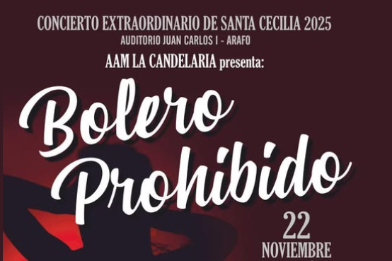 Arafo, a 11 de noviembre de 2025.- La magia del bolero está de vuelta. La Agrupación Artístico Musical La Candelaria prepara un evento que promete hacer latir más fuerte los corazones de los amantes de la buena música. Bajo el título «Bolero Prohibido», el Auditorio Juan Carlos I de Arafo se vestirá de gala el sábado 22 de noviembre de 2025 para acoger un espectáculo único que combinará pasión, emoción y el talento de artistas de primer nivel.