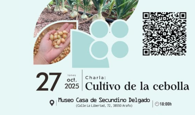 Arafo, a 24 de octubre de 2025.- El cultivo tradicional de la cebolla será el protagonista de una charla informativa que se celebrará el próximo lunes 27 de octubre a las 18:00 horas en la Casona de Secundino Delgado, en el municipio de Arafo.