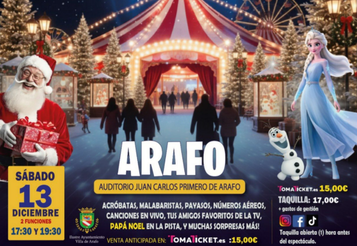 La Villa de Arafo se prepara para vivir una de las citas más esperadas del calendario navideño con la llegada del ‘Circo de la Navidad’, un espectáculo integral diseñado para todas las edades que tendrá lugar el próximo sábado 13 de diciembre en el Auditorio Juan Carlos I.