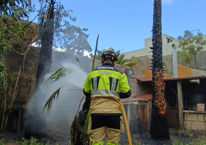 Arafo, a 26 de febrero de 2026.- Efectivos del Consorcio de Bomberos de Tenerife, con base en el parque de Güímar, fueron movilizados en la tarde de ayer para intervenir en el incendio de una palmera situada en la calle Nicanor Rivero González, en la localidad de La Hidalga, perteneciente al municipio de Arafo.