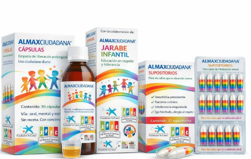 No, no es un medicamento real. Es un «fármaco simbólico» diseñado para atacar lo que más está enfermando nuestro tejido social: la xenofobia, el racismo, la homofobia y todas las formas de exclusión.