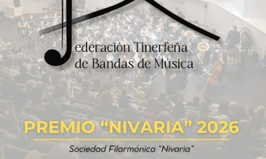 La Junta Directiva de la Sociedad Filarmónica “Nivaria”, informa que de acuerdo con su dirección artística, se complace en anunciar la concesión del PREMIO NIVARIA, en su edición 2026, a la FEDERACIÓN TINERFEÑA DE BANDAS DE MÚSICA.