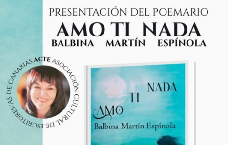Arafo, a 17 de noviembre de 2025.- El Ayuntamiento de Arafo anuncia la celebración de un acto cultural de primer nivel con la presentación del poemario “Amo Ti Nada”, de la poeta Balbina Martín Espínola. La obra, que ha sido distinguida con el prestigioso Premio de Poesía Social Balbina Rivero 2025, se dará a conocer a la ciudadanía en un evento que tendrá lugar el viernes 21 de noviembre a las 19:00 horas en la Casona Secundino Delgado.