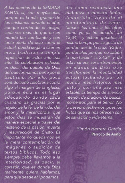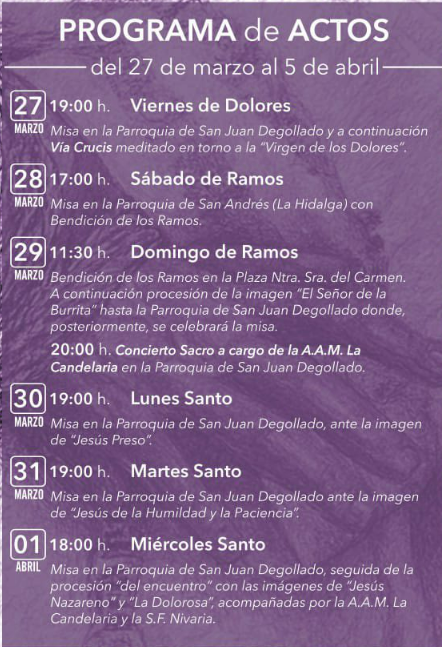 Arafo, a 30 de marzo de 2026.- PROGRAMA DE LA SEMANA SANTA DE LA VILLA DE ARAFO.