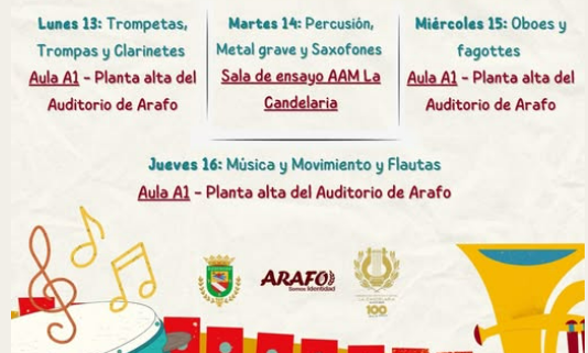 - Lugar: Aula A1 / Sala de ensayo de la AAM La Candelaria, ubicada en el Auditorio de Arafo