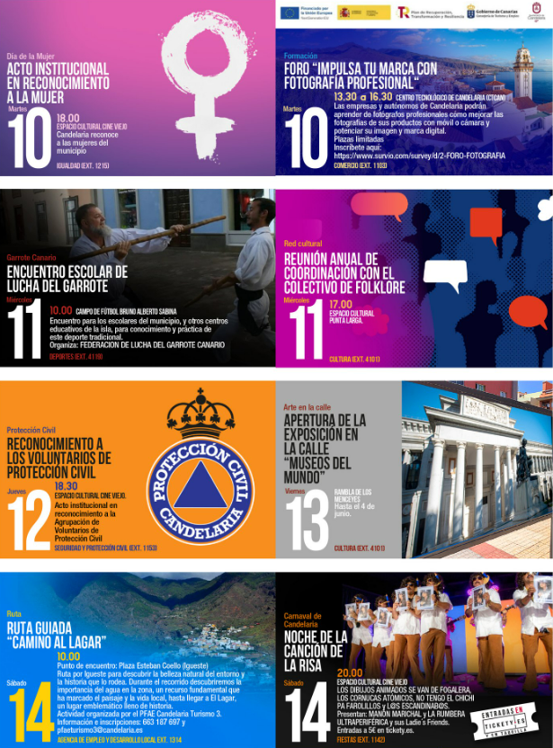 Una semana, en definitiva, que refleja la apuesta de Candelaria por una programación cultural diversa, accesible y pensada para todos los públicos. La agenda completa, con los contactos de cada área, está disponible en los canales oficiales del Ayuntamiento.