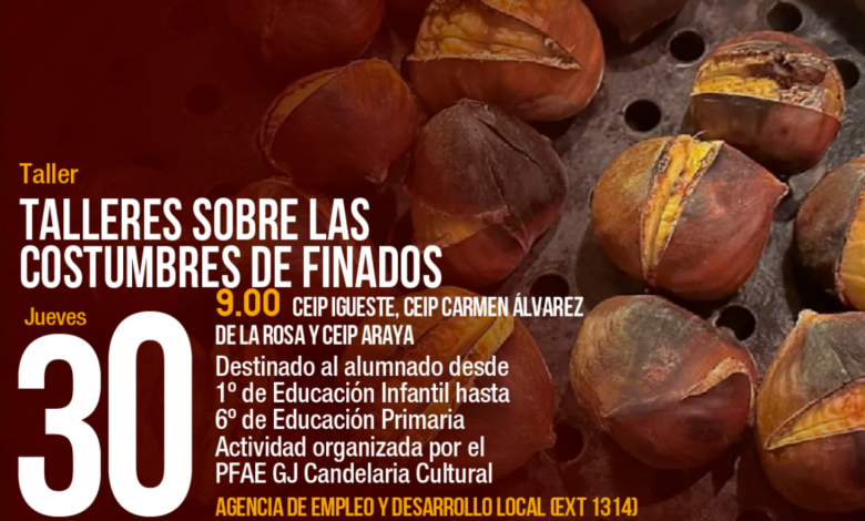 La jornada arrancará por la mañana en el CEIP Punta Larga, donde el alumnado de Infantil a 6.º de Primaria participará en los talleres sobre las costumbres de Finados, organizados por el PFAE GJ Candelaria Cultural, el día 31. A través de dinámicas y propuestas pedagógicas, los niños y niñas conocerán los elementos más significativos de esta celebración tradicional, desde el valor de la memoria hasta los símbolos propios de la cultura canaria en torno a los ancestros.