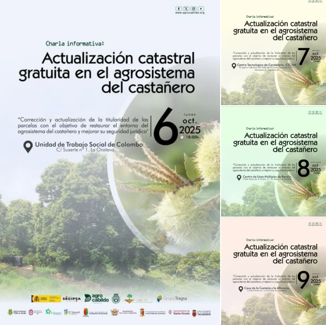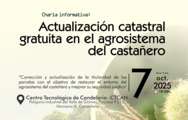 Candelaria, a 30 de septiembre de 2025.- En un esfuerzo por apoyar al sector agrícola de Tenerife, el AgroCabildo ha organizado un ciclo de charlas informativas gratuitas sobre «Actualización catastral gratuita en el agrosistema del castañero». Estas sesiones, que se desarrollarán durante octubre en diferentes municipios de la isla, están dirigidas a agricultores y propietarios de terrenos que necesiten regularizar su situación en el catastro.