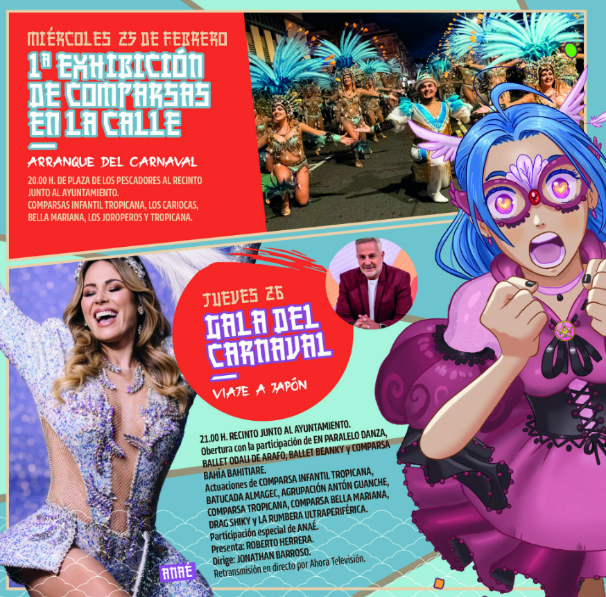 Candelaria ya tiene puesta la peluca y el pasaporte. El Carnaval 2026 viaja a Japón como temática principal y celebrará sus actos centrales entre el 25 de febrero y el 1 de marzo, con una programación pensada para todos los públicos, especialmente familiar, y con el protagonismo de los colectivos carnavaleros del municipio.