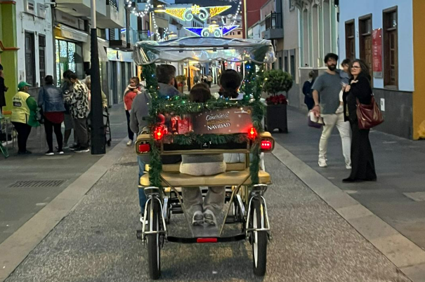 Organizado por el Ayuntamiento de Candelaria, este atractivo navideño ofrece a vecinos y visitantes la oportunidad de subirse a estas bicicletas decoradas y recorrer uno de los entornos más emblemáticos del municipio, sumergiéndose en el ambiente luminoso y festivo que caracteriza estas fechas.