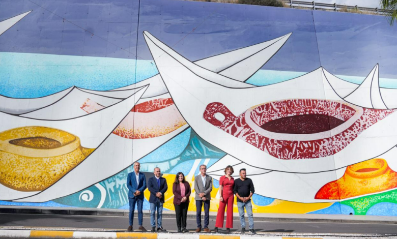 El Ayuntamiento de Candelaria inauguró este jueves, 18 de diciembre, el mural artístico ubicado en la rotonda de entrada al municipio, una obra basada en los bocetos originales del artista canario Pepe Dámaso y concebida como una pieza emblemática que refuerza la identidad cultural y la proyección artística de la Villa.