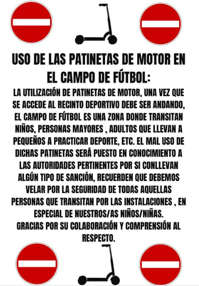 LA EMF DE CANDELARIA ABOGA POR EL BUEN USO DE PATINETES ELÉCTRICOS EN EL CAMPO DE FÚTBOL.