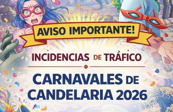 Con motivo de la celebración de los actos del Carnaval de Candelaria 2026, el Ayuntamiento informa de las restricciones de estacionamiento y circulación que afectarán a diferentes puntos del municipio durante los próximos días. Desde la organización rogamos máxima atención a la señalización provisional que se instalará en las vías afectadas y agradecemos de antemano la colaboración vecinal para garantizar el buen desarrollo de los eventos.