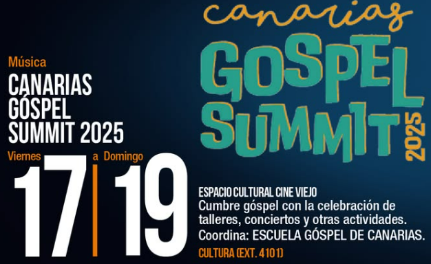 Candelaria se prepara para acoger la VI edición de Canarias Gospel Summit, organizado por la Escuela Góspel de Canarias en colaboración con el Ayuntamiento de Candelaria dentro del marco de la edición de 2025 del Festival de Góspel de Canarias. Esta cita anual de carácter internacional tendrá lugar los 16, 17, 18 y 19 de octubre, con sus actividades principales en el Espacio Cultural Cine Viejo.
