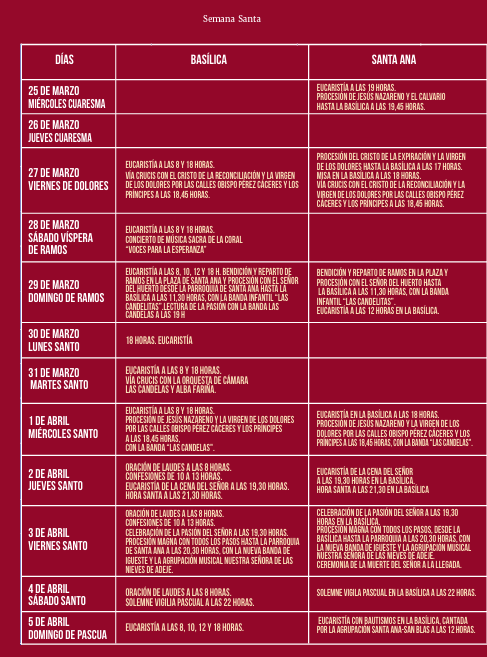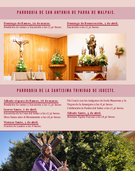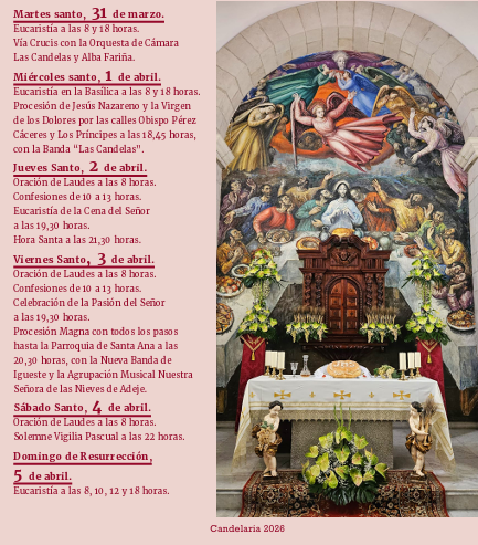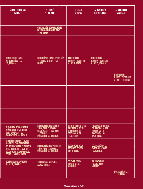 Candelaria, a 30 de marzo de 2026.- PROGRAMA DE ACTIVIDADES DE LA SEMANA SANTA DEL MUNICIPIO DE CANDELARIA.