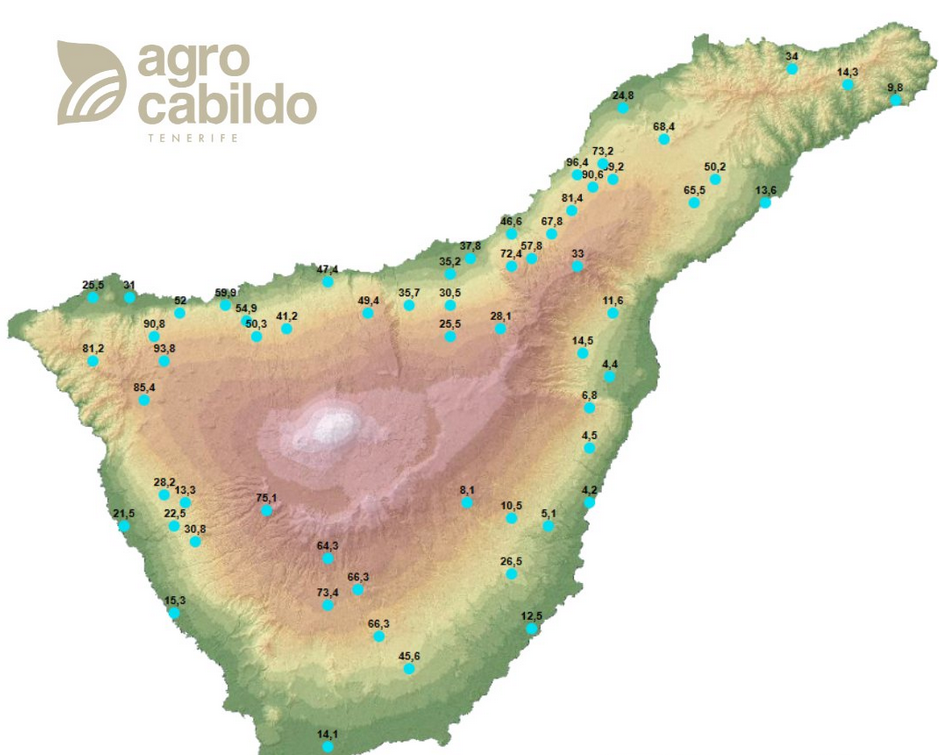 En la sección de agrometeorología de LA WEB de AgroCabildo se pueden consultar los valores correspondientes de todas las estaciones meteorológicas del Cabildo de Tenerife presentes en la Isla.