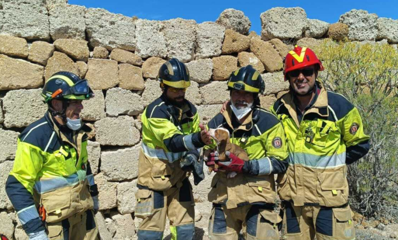 Fasnia, a 25 de febrero de 2026.- Efectivos del Parque de Bomberos de Güímar fueron activados en la jornada del pasado domingo para llevar a cabo un rescate animal en el municipio de Fasnia. El aviso se recibió sobre las 12:15 horas, alertando de que un perro se encontraba atrapado en el hueco de una pared en el camino Los Charcos.