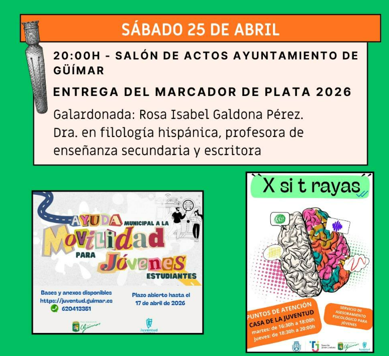 Güímar, a 3 de abril de 2026. OFERTA CULTURAL MUNICIPAL EN EL MUNICIPIO DE GÜÍMAR.