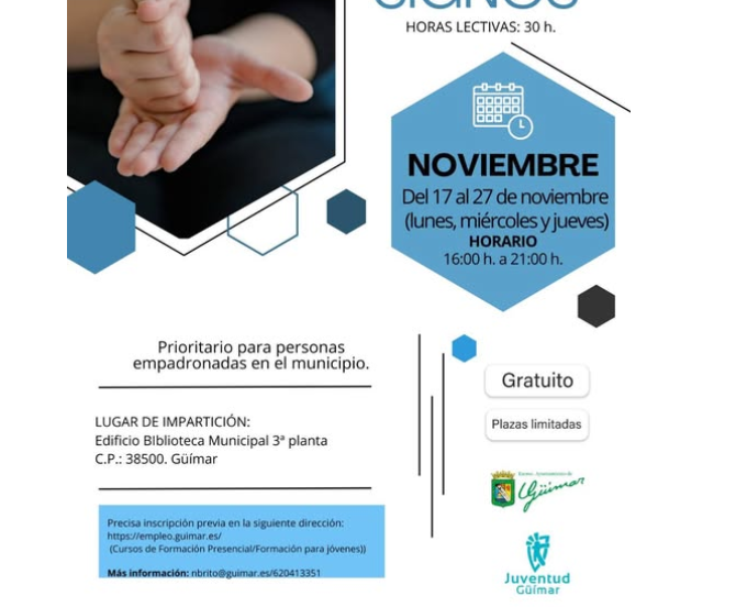 Güímar, a 10 de octubre de 2025.- La comunicación es un puente hacia la inclusión, y el Ayuntamiento de Güímar está a punto de construir uno nuevo. La Biblioteca Municipal será la sede de un curso gratuito de Lengua de Signos Española (LSE), una iniciativa formativa diseñada para que vecinos, trabajadores del sector público y cualquier persona interesada puedan adquirir las competencias básicas para interactuar y comprender a la comunidad sorda.