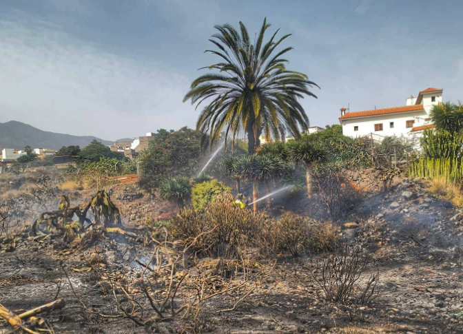 Güímar, a 19 de septiembre de 2025.- La tranquilidad de la tarde en la medianía baja de Güímar se vio interrumpida este mediodía del viernes, por las columnas de humo que ascendían de un incendio de maleza y rastrojos. El fuego, que se desarrolló en un entorno cercano a viviendas, encendió las alarmas y provocó la inmediata activación de los dispositivos de emergencia.