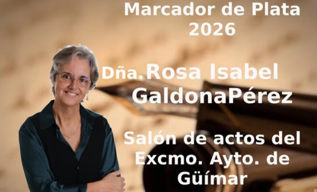 El Ayuntamiento de Güímar ha distinguido a la filóloga, docente y escritora Rosa Isabel Galdona Pérez con el galardón Marcador de Plata 2026, un premio que reconoce la trayectoria de personas o entidades vinculadas al mundo de los libros y la literatura.