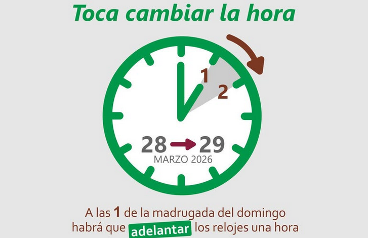 El ajuste tendrá lugar en la madrugada del sábado al domingo. Cuando las agujas del reloj marquen la 1:00 de la madrugada, habrá que adelantarlas hasta las 2:00 horas. De esta forma, se pasará oficialmente al horario que estará vigente durante los próximos meses.